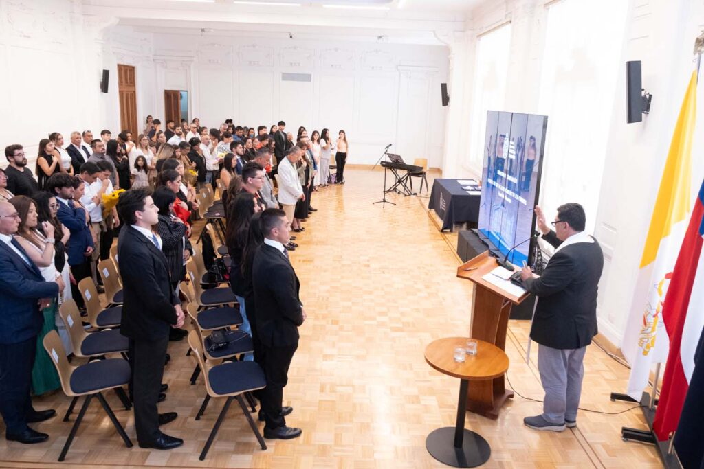 La ceremonia fue presidida por la secretaria académica, Prof. Jéssica López Pastén, y contó con la participación de la mesa de honor integrada por la Prof. Lorena González (jefa de docencia), el Prof. Andrés Córdova (jefe de investigación), la Prof. Andrea Poblete (jefa de Vinculación con Empresas) y el Prof. Sebastián Pizarro (jefe de Vinculación con el Medio).