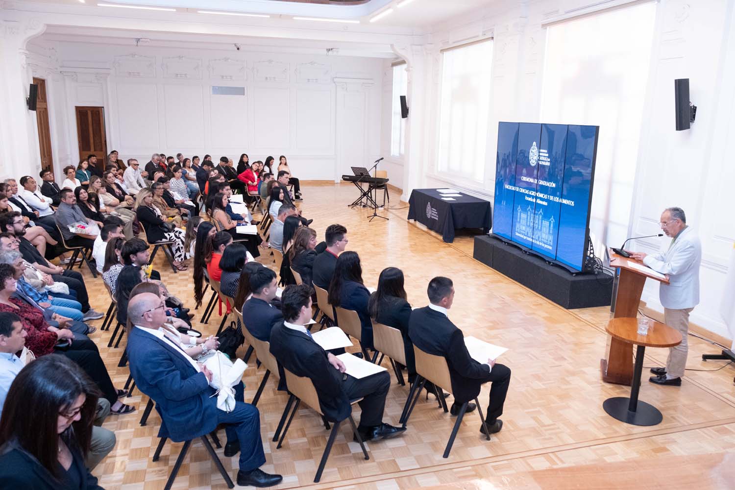 La ceremonia fue presidida por la secretaria académica, Prof. Jéssica López Pastén, y contó con la participación de la mesa de honor integrada por la Prof. Lorena González (jefa de docencia), el Prof. Andrés Córdova (jefe de investigación), la Prof. Andrea Poblete (jefa de Vinculación con Empresas) y el Prof. Sebastián Pizarro (jefe de Vinculación con el Medio).