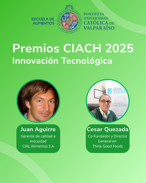 La Escuela de Alimentos de la Pontificia Universidad Católica de Valparaíso celebra con orgullo la nominación de sus ingenieros e ingenieras de alimentos en los Premios CIACH 2025, instancia que reconoce el aporte de profesionales destacados de distintas universidades del país al desarrollo del sector alimentario.